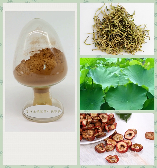 金银花荷叶复方提取物是以传统中医药理论和现代医学研究成果为依据,以金银花、荷叶、菊花、山楂、决明子等药食同源中药为原料提取有效成分加工而成,适合长期使用,对预防体重增加、减轻体重等亚健康状况效果显著。